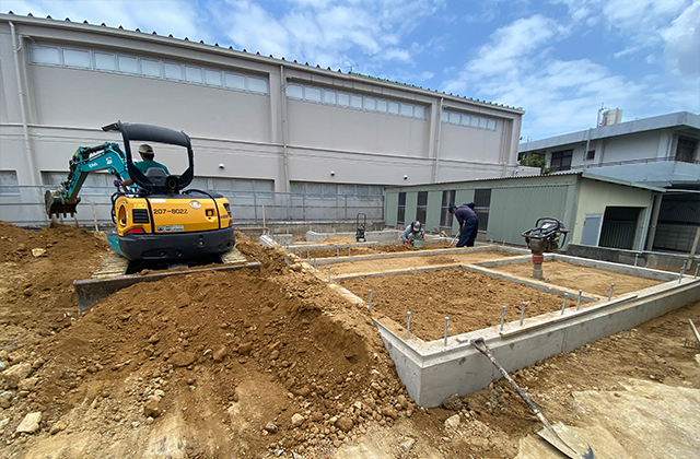 道路工事や道路乗り入れ工事、建築基礎工事、擁壁工事など、地域のインフラ整備や基盤構築を行っています。